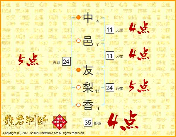 中邑友梨香さんの総運は35画の4点!