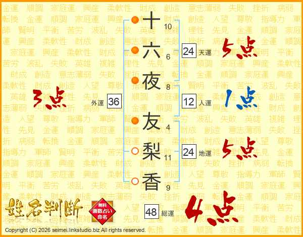 十(10画)六(6画)夜(8画) 友(4画)梨(11画)香(9画)