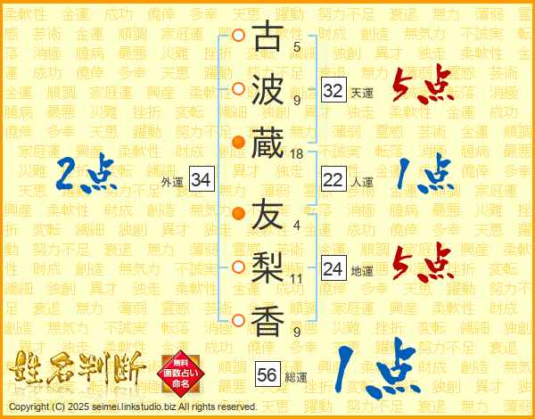 古波蔵友梨香さんの総運は56画の1点