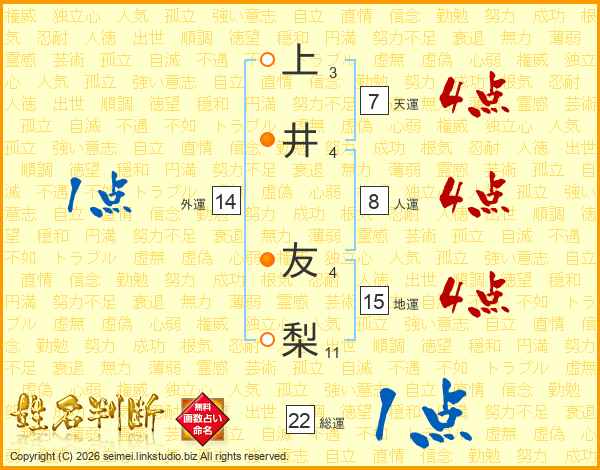 上井友梨さんの天運は7画の4点!