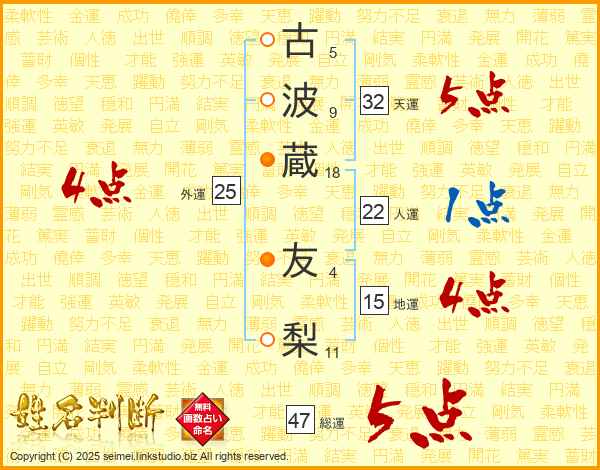 古波蔵友梨さんの総運は47画の5点!