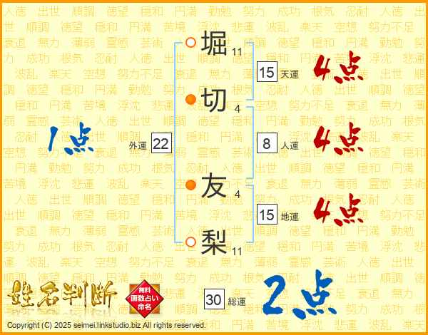 堀切友梨さんの総運は30画の2点!