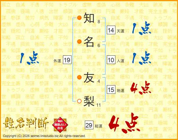 知名友梨さんの総運は29画の4点!
