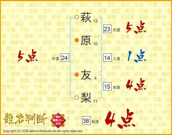 萩原友梨さんの総運は38画の4点!
