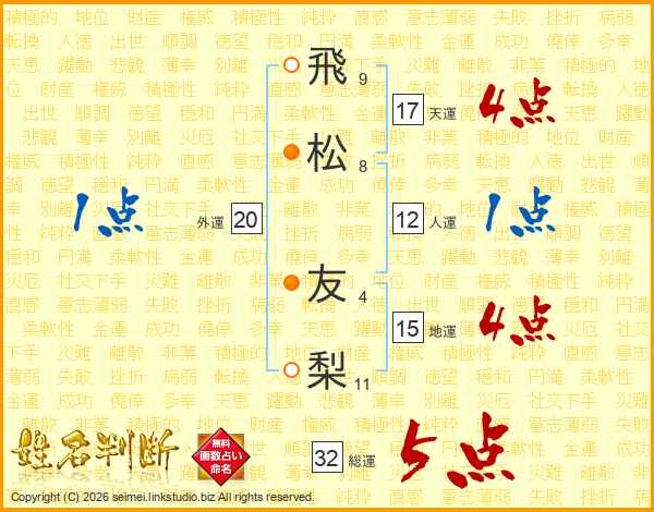 飛松友梨さんの総運は32画の5点!