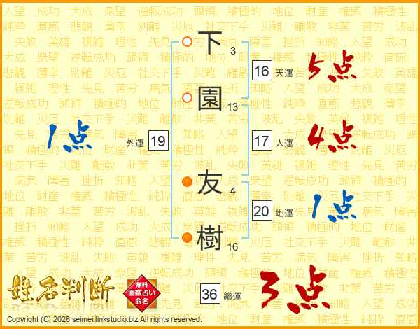 下園友樹さんの天運は16画の5点!