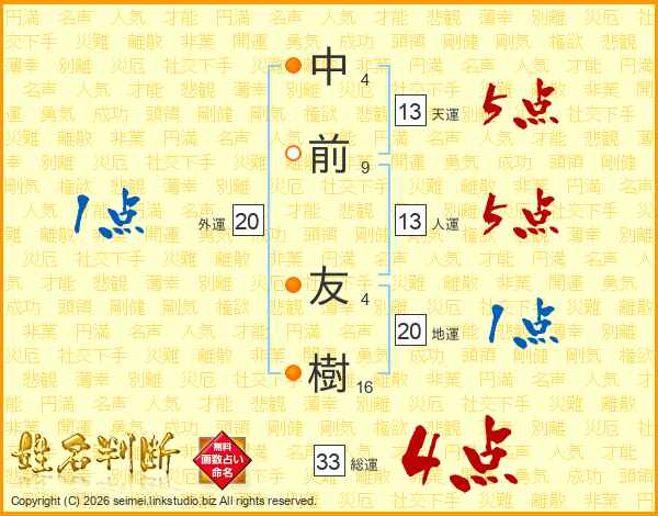 中前友樹さんの総運は33画の4点!