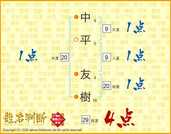 中平友樹さんの総運は29画の4点!