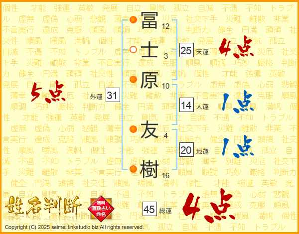 冨士原友樹さんの天運は25画の4点!