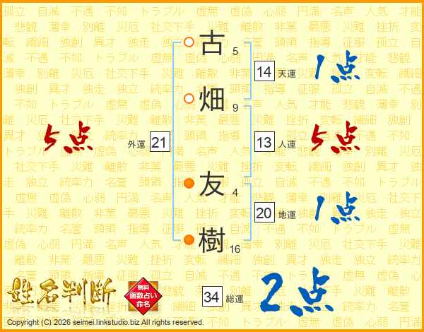 古畑友樹さんの天運は14画の1点!