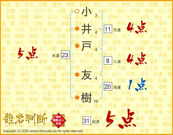 小井戸友樹さんの総運は31画の5点!