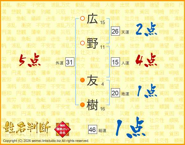 広野友樹さんの総運は46画の1点!