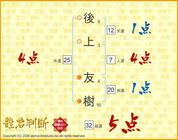 後上友樹さんの総運は32画の5点!
