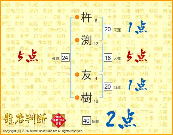 杵(8画)渕(12画) 友(4画)樹(16画)