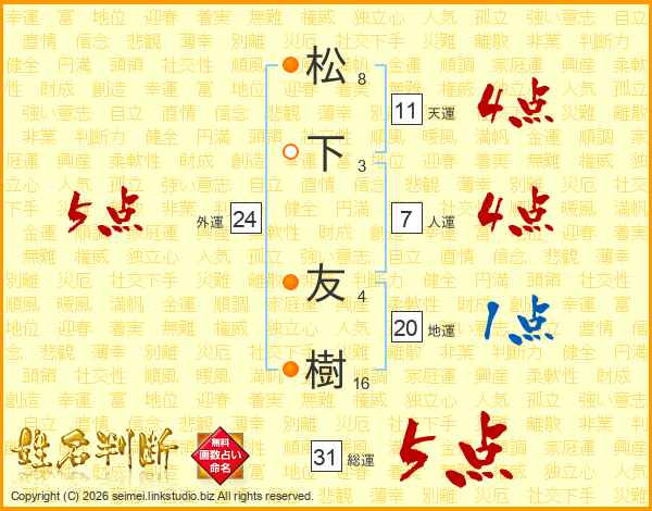 松下友樹さんの総運は31画の5点!