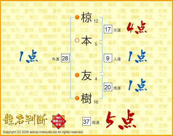 椋本友樹さんの天運は17画の4点!