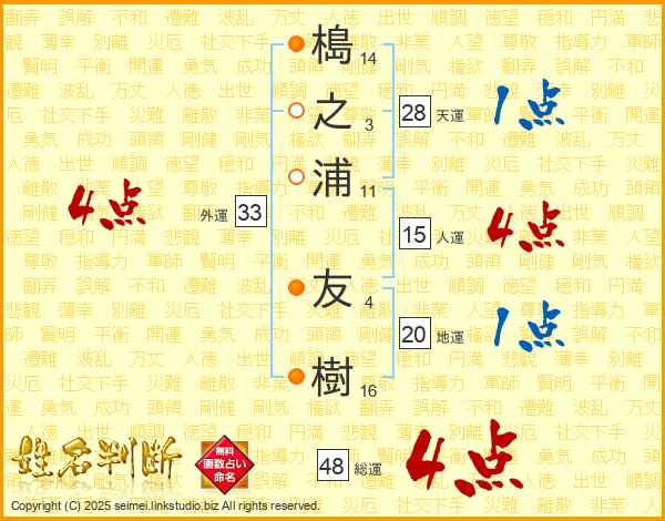 槝之浦友樹さんの外運は33画の4点!