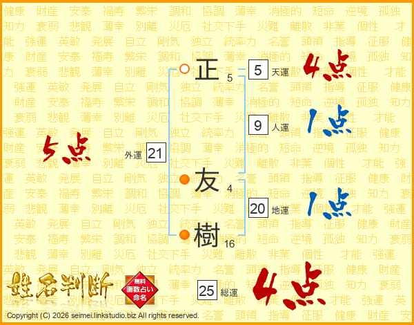 正友樹さんの総運は25画の4点!