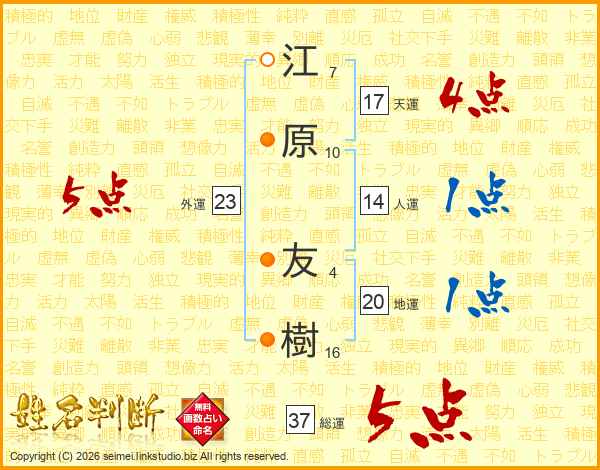 江原友樹さんの総運は37画の5点!