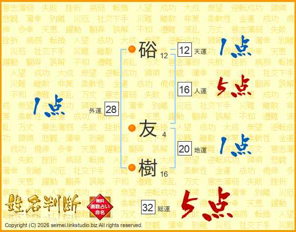 硲友樹さんの総運は32画の5点!