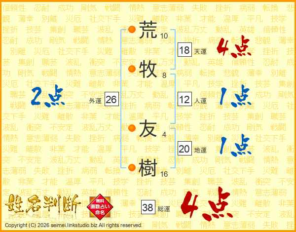 荒牧友樹さんの総運は38画の4点!