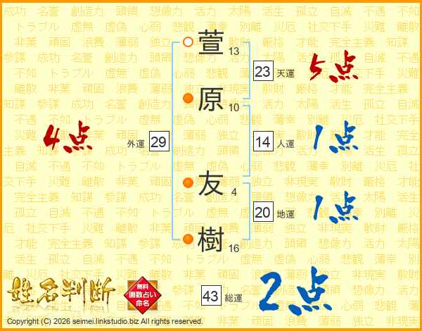 萱原友樹さんの総運は43画の2点!