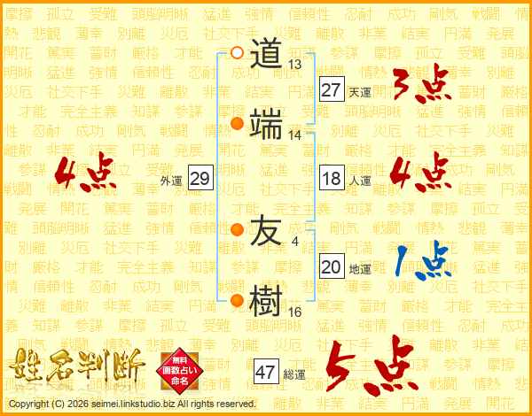 道端友樹さんの総運は47画の5点!