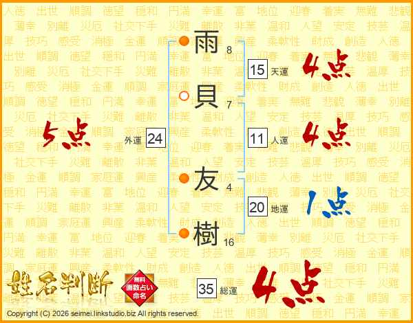 雨貝友樹さんの総運は35画の4点!