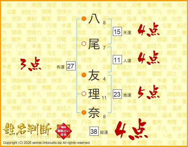 八尾友理奈さんの総運は38画の4点!