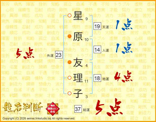 星(9画)原(10画) 友(4画)理(11画)子(3画)