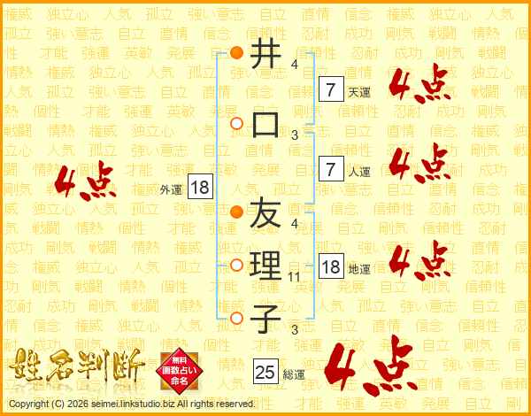 井(4画)口(3画)  友(4画)理(11画)子(3画)