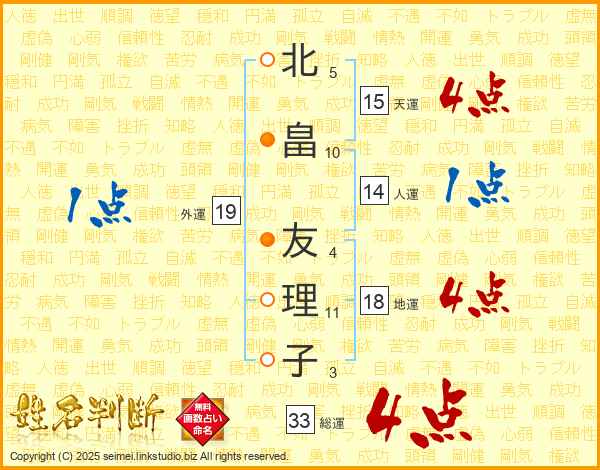 北畠友理子さんの総運は33画の4点!