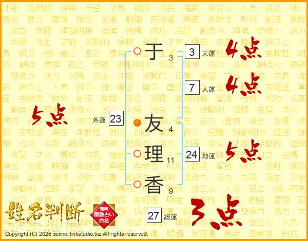 于友理香さんの外運は23画の5点!