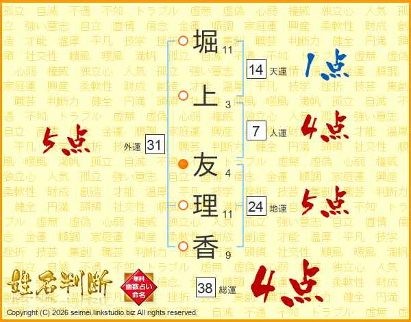 堀上友理香さんの総運は38画の4点!