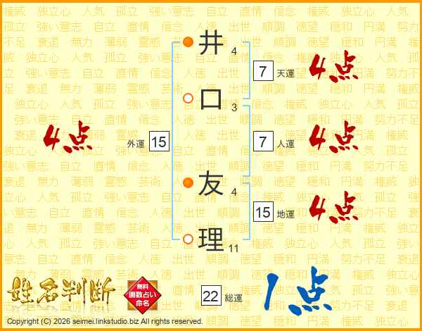 井(4画)口(3画) 友(4画)理(11画)