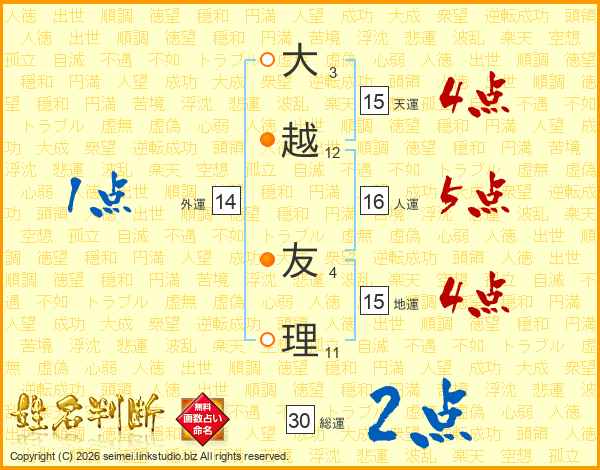 大越友理さんの天運は15画の4点!