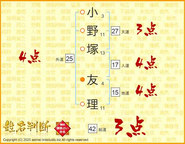 小野塚友理さんの人運は17画の4点!
