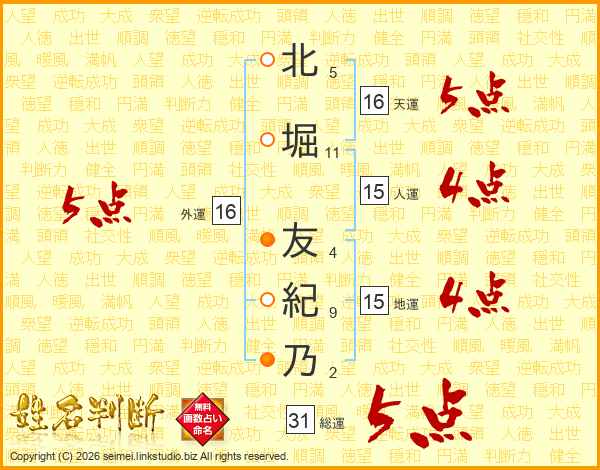 北堀友紀乃さんの総運は31画の5点!
