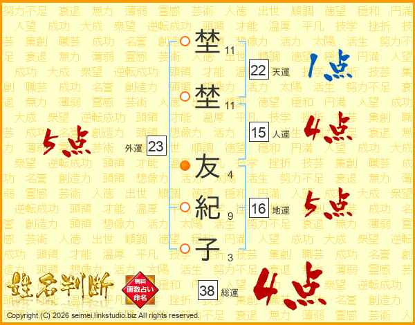 埜埜友紀子さんの総運は38画の4点!