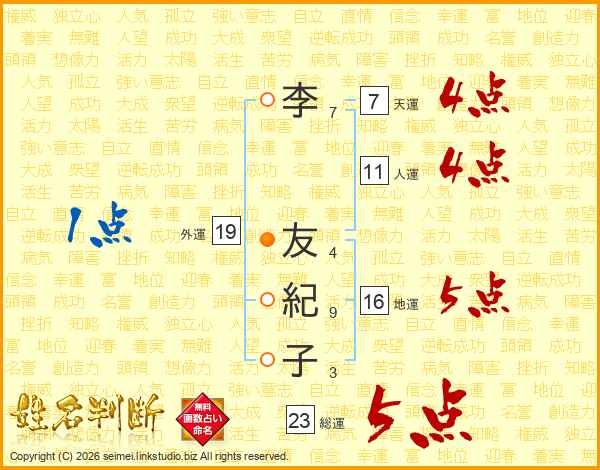 李友紀子さんの総運は23画の5点!