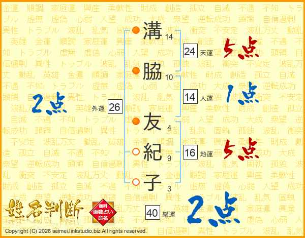 溝脇友紀子さんの総運は40画の2点!
