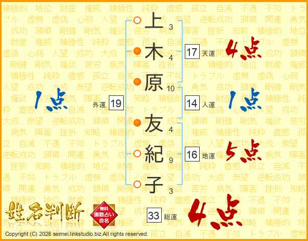上木原友紀子さんの総運は33画の4点!