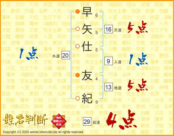 早(6画)矢(5画)仕(5画) 友(4画)紀(9画)