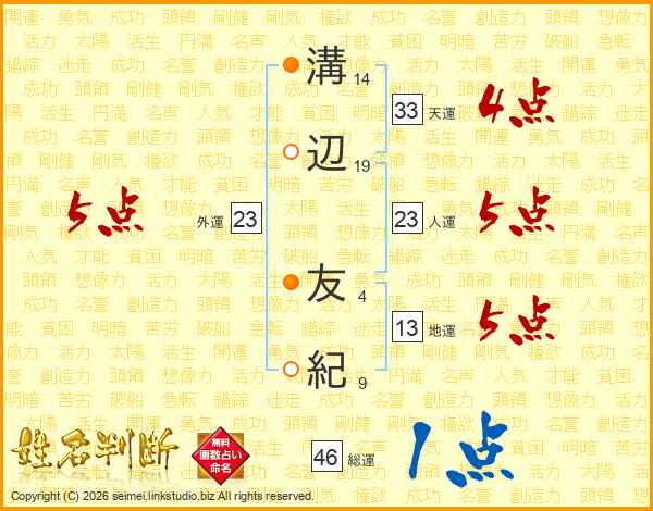 溝(14画)辺(19画) 友(4画)紀(9画)