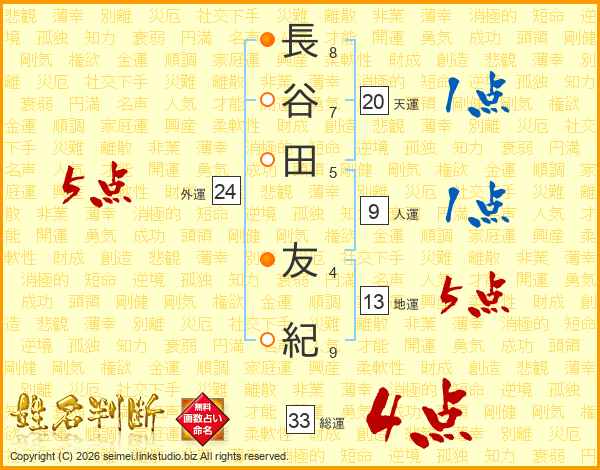 長谷田友紀さんの総運は33画の4点!