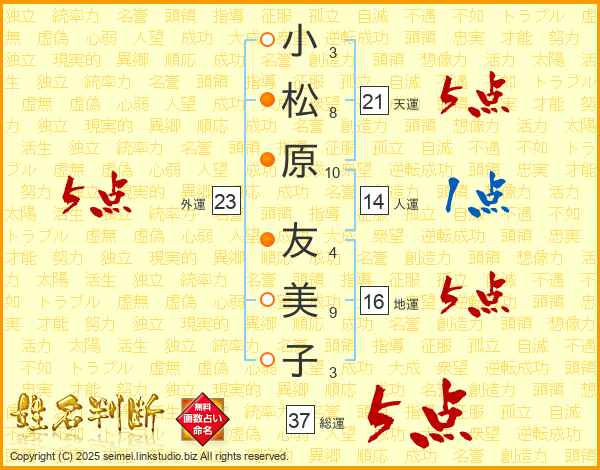 小松原友美子さんの天運は21画の5点!