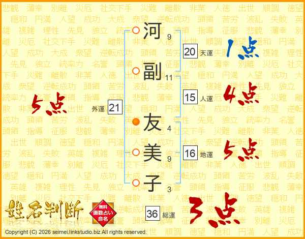河副友美子さんの外運は21画の5点!
