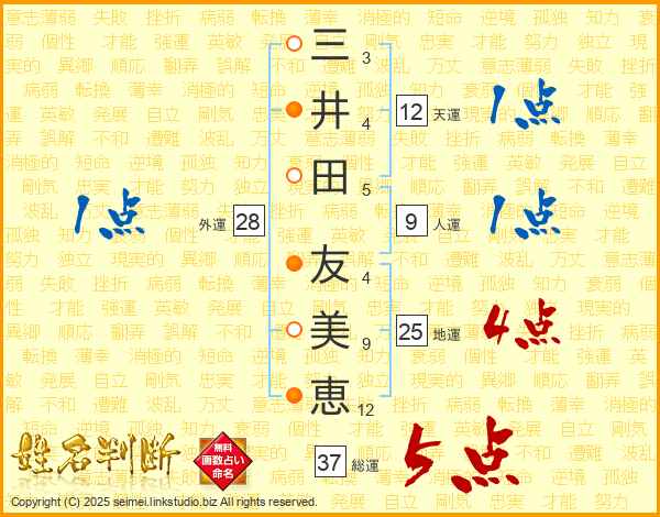 三井田友美恵さんの総運は37画の5点!