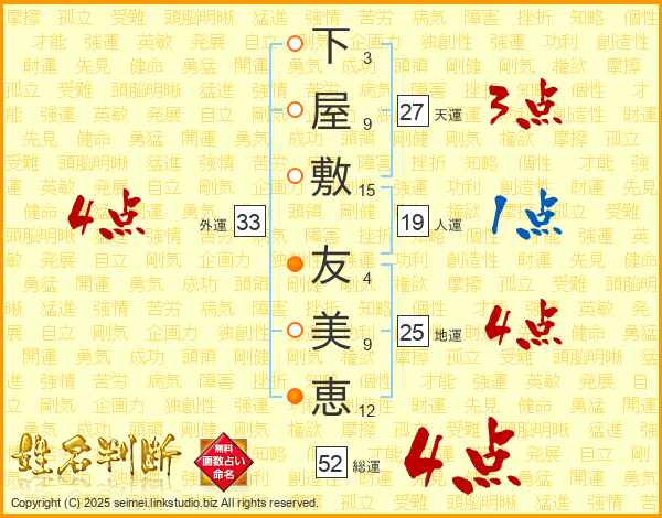 下屋敷友美恵さんの外運は33画の4点!