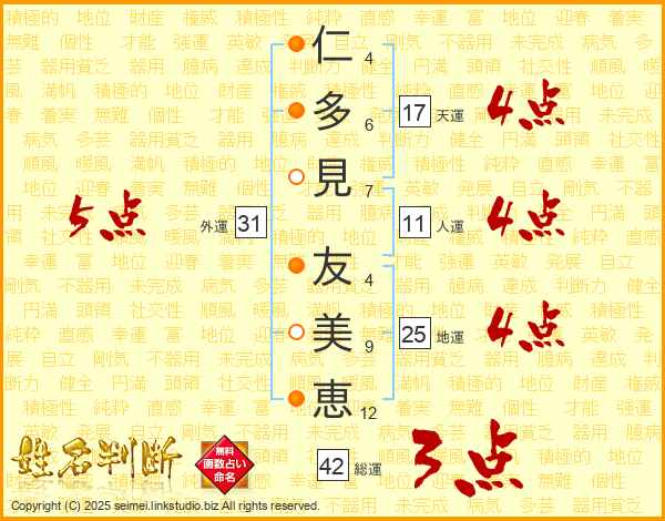 仁多見友美恵さんの地運は25画の4点!